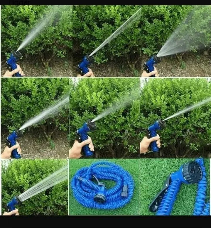 - Con 7 modos de rociado de agua, perfecto para regar flores, lavar autos, limpiar pisos, por ejemplo.
