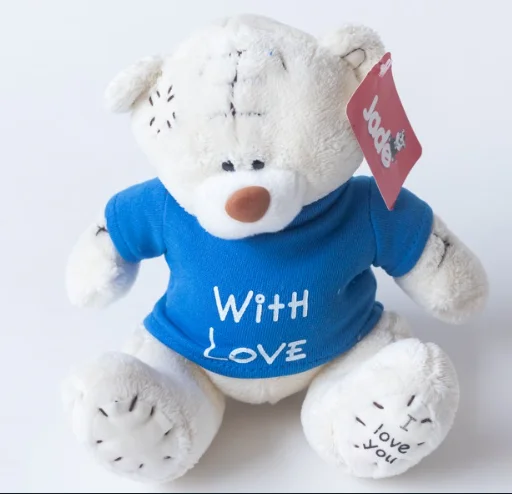 Tierno osito de peluche con camiseta que por delante tiene la ilustración y por detrás el texto del poema «Nana». Sus ojitos son de botones de plástico cosidos. Suave pelo de peluche. Altura, sentado: 20 cm (con orejas) Peso: 77 g Material: 100 % poliéster. Incluye donativo solidario de 50 céntimos.